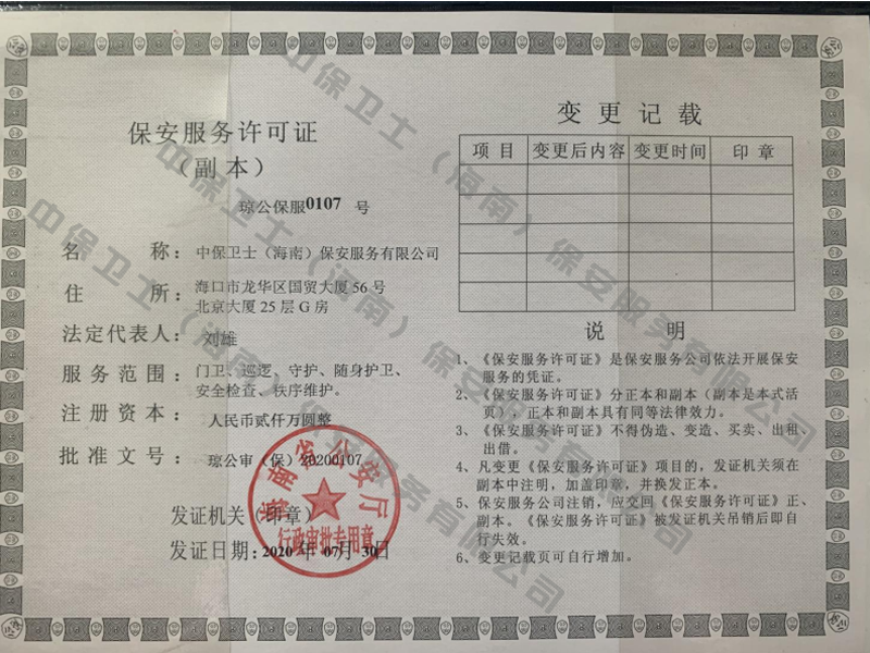 开云手机站在线入口-开云(中国)是经海南省公安厅批准,依法持有《保安服务许可证》,提供保安服务、门卫、巡逻、守护、区域秩序维护、随身护卫、安全检查的专业化保安服务公司。